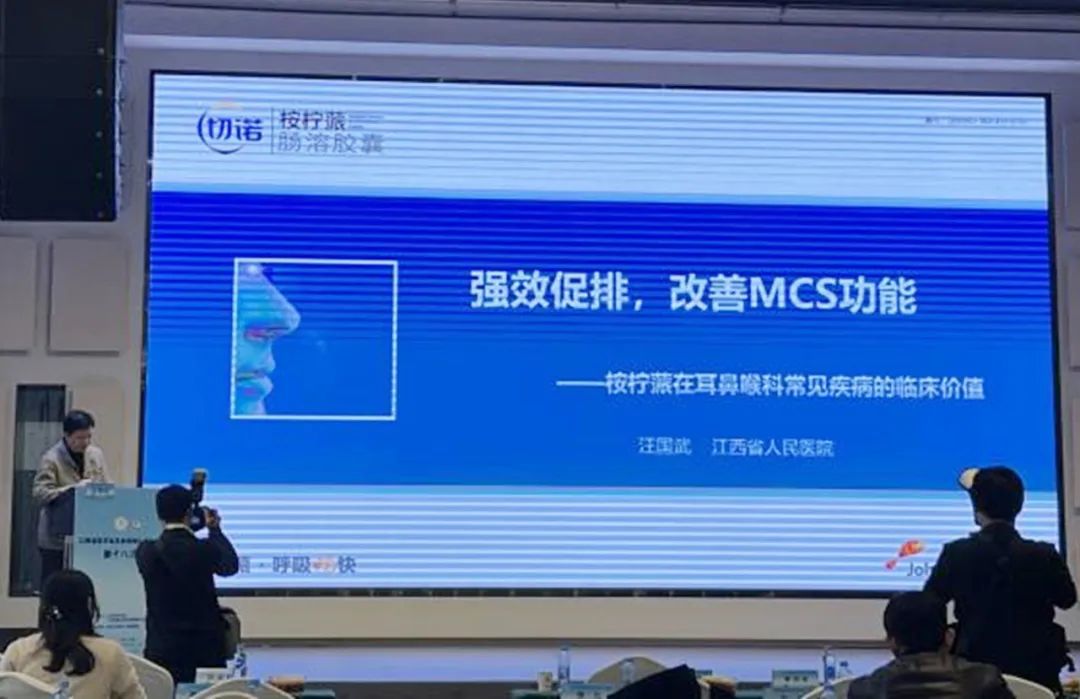 為更好地支持學(xué)科建設(shè),更有效地傳達(dá)疾病診療進(jìn)展及治療信息,北京遠(yuǎn)大九和藥業(yè)攜旗下明星產(chǎn)品——桉檸蒎腸溶膠囊(商品名:切諾®)參會(huì)并舉辦了專(zhuān)題講座,專(zhuān)題會(huì)邀請(qǐng)江西省研究型醫(yī)院學(xué)會(huì)中西醫(yī)結(jié)合耳鼻咽喉科分會(huì)副主任委員、江西省醫(yī)學(xué)會(huì)耳鼻咽喉頭頸外科專(zhuān)業(yè)委員會(huì)常務(wù)委員汪國(guó)武教授擔(dān)任講者,汪教授詳細(xì)闡述了桉檸蒎作為國(guó)內(nèi)唯一的黏液溶解促排劑及黏液纖毛清除系統(tǒng)恢復(fù)劑在鼻竇炎、FESS圍手術(shù)期、分泌性中耳炎等疾病中的循證醫(yī)學(xué)以及臨床指南。桉檸蒎因具有三重作用機(jī)制,可以通過(guò)堿化黏液、調(diào)節(jié)分泌、增強(qiáng)纖毛活性來(lái)發(fā)揮促排、抗炎、抑菌的作用,全面改善黏液纖毛清除系統(tǒng)功能,打破慢性鼻竇炎黏液淤積與炎癥的惡性循環(huán);在FESS圍手術(shù)期使用可以通氣引流,恢復(fù)黏液纖毛清除系統(tǒng)功能,術(shù)后促進(jìn)手術(shù)創(chuàng)面愈合,提高手術(shù)成功率;也可恢復(fù)分泌性中耳炎患者的咽鼓管功能,療效確切,安全性好。