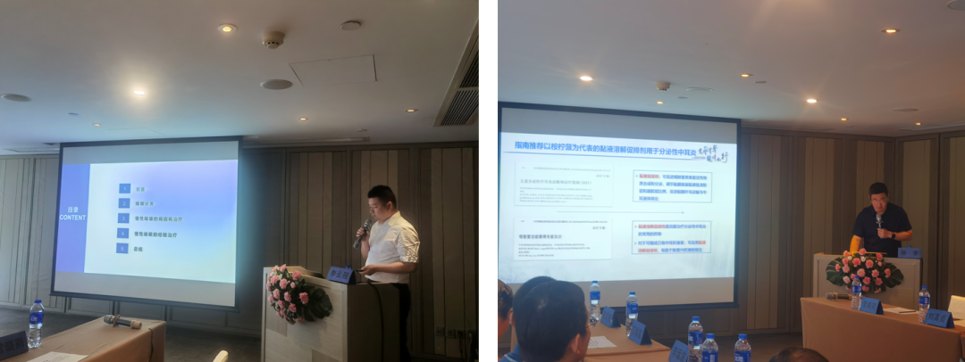 討論環(huán)節(jié):成都市雙流區(qū)第一人民醫(yī)院桑暢教授、簡陽市人民醫(yī)院伍保均教授、綿陽市第三人民醫(yī)院袁萍教授分別對分泌性中耳炎在兒童和成人中的發(fā)病率、癥狀和治療方法上有何不同?變應(yīng)性鼻炎與哮喘的關(guān)系?黏液溶解促排劑改善黏液纖毛清除系統(tǒng)功能,在耳鼻喉科常見疾病診療中的臨床價值?做了討論和闡述,桉檸蒎腸溶膠囊作為黏液纖毛清除系統(tǒng)功能恢復(fù)劑的代表藥物,臨床價值得到了與會專家的高度認可。