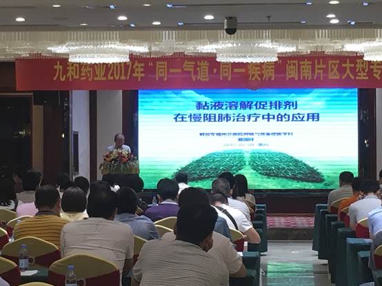 ??????? 2017年閩南片區(qū)“同一氣道、同一疾病”專家研討會于2017年7月9日在泉州鯉城大飯店隆重召開。本次會議由北京九和藥業(yè)有限公司主辦,本次會議齊聚了閩南地區(qū)各大醫(yī)院呼吸重要專家百余人,就“黏液溶解促排劑在慢阻肺治療中的應(yīng)用”、“氣道黏液高分泌診治新進展”、“慢性炎癥性疾病氣道黏液高分泌中國專家共識”、“黏液纖毛清除系統(tǒng)在氣道疾病中的重要作用及研究新進展”等內(nèi)容進行交流和探討。